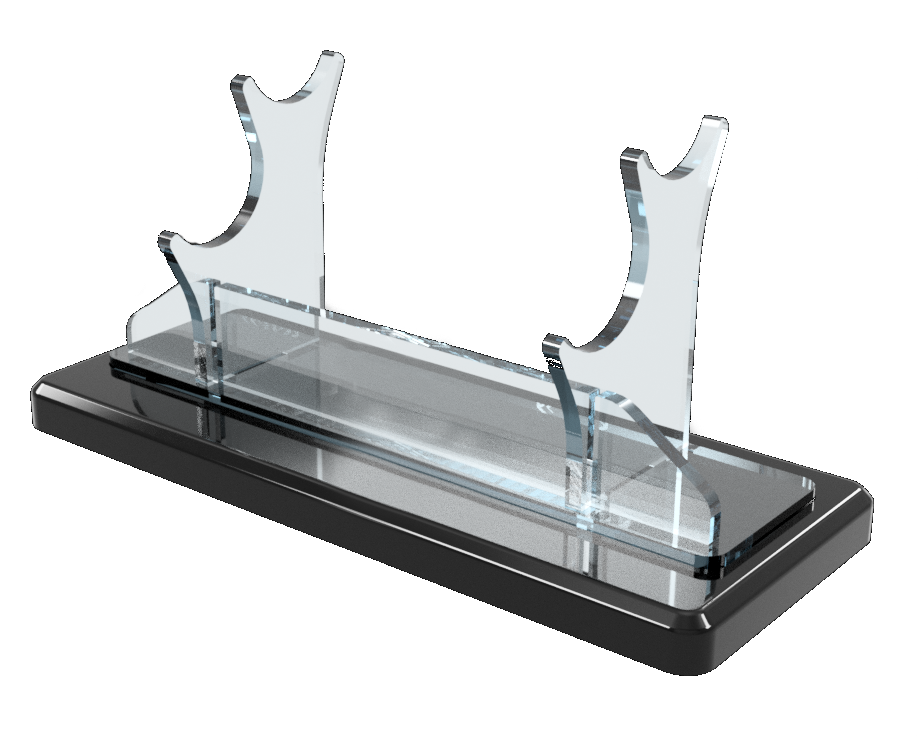 Our hand crafted Double Tier Saber Display Stand is made from fibre glass, hand laid-up in an alloy CNC mould, the top section is made from 6mm cast acrylic, choose from our range of Insignia or blank. If you wish to choose your own design, please email us with your Insignia prior to placing your order.
